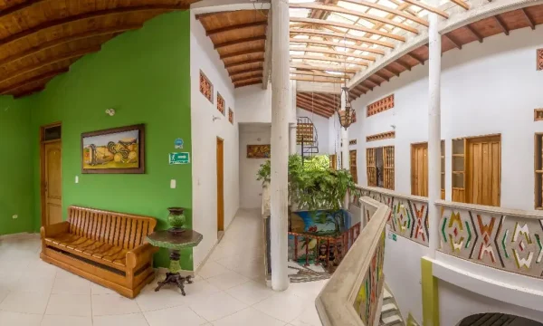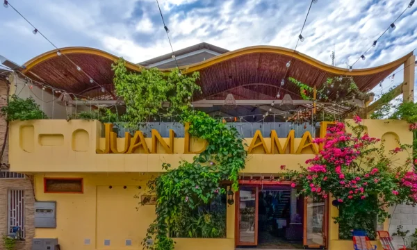 Juan de la Mar Hotel está ubicado en la emblemática calle del Pescador, en el centro de Necoclí. Con una arquitectura caribeña moderna, se distingue por su fachada adornada con veraneras que caen desde el segundo piso hasta el primero, bañando el frente de color y frescura. Las letras en relieve y los detalles inspirados en las molas de los indígenas Tule Kuna realzan su identidad cultural y su compromiso con la estética local. El hotel cuenta con ocho habitaciones cómodas y bien equipadas, con baño privado, Smart TV, Wi-Fi, aire acondicionado y muy buena lencería. Algunas habitaciones incluyen escritorio auxiliar, ideales para huéspedes que combinan descanso y trabajo remoto. Entre sus instalaciones destaca un auditorio abierto con ayudas audiovisuales, perfecto para reuniones, conferencias y talleres de hasta 45 personas. Además, dispone de servicio de alimentación que incluye desayunos tradicionales de Necoclí, desayunos continentales y almuerzos preparados con productos locales. También ofrece servicio de catering para eventos. Juan de la Mar Hotel ha hecho una apuesta fuerte por la sostenibilidad: toda su energía proviene de paneles solares, y su cocina trabaja bajo una filosofía de economía solidaria, adquiriendo plátanos, frutas, quesos y otros insumos directamente de productores locales. Su ambiente combina el confort contemporáneo con la esencia del Caribe, ofreciendo un espacio fresco, acogedor y conectado con la vida de la calle del Pescador, a solo 40 metros de la playa.